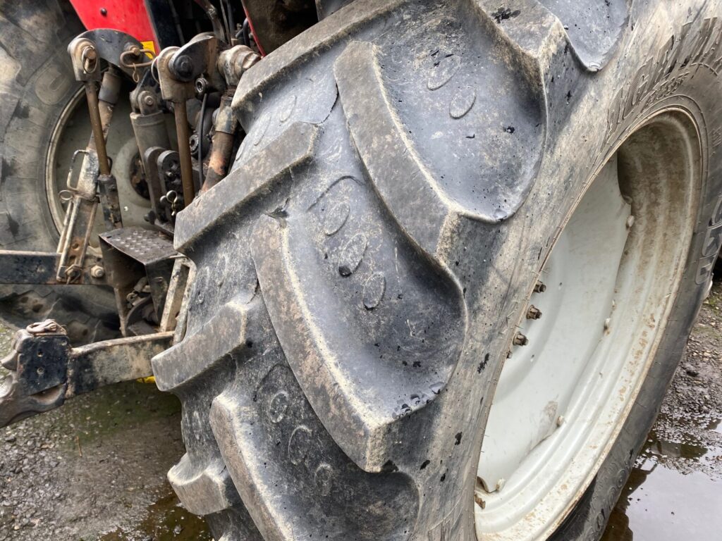 2005 Massey Ferguson 6465 4WD Tractor, 40Kph Speedmatching transmission, 120HP, 2 Open centre Spools 57 litres/min, Front tyres: 380/85 R28 (50%) Rear tyres: 460/85 R38 (50%) Quicke Q55 Loader