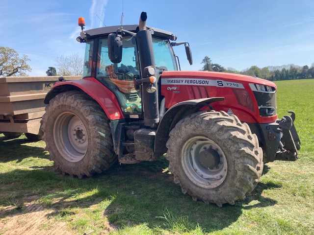 2018 Massey Ferguson 7718S Tractor, Efficient Spec, Dyna6 Transmission, 4 Spools, Manual Rear Top Link, Air Con, Front PTO, Front Linkage, Front Suspension, Cab Suspension, Air Brakes, Power beyond, 540/65R28 & 650/65R38 Trelleborg Tyres